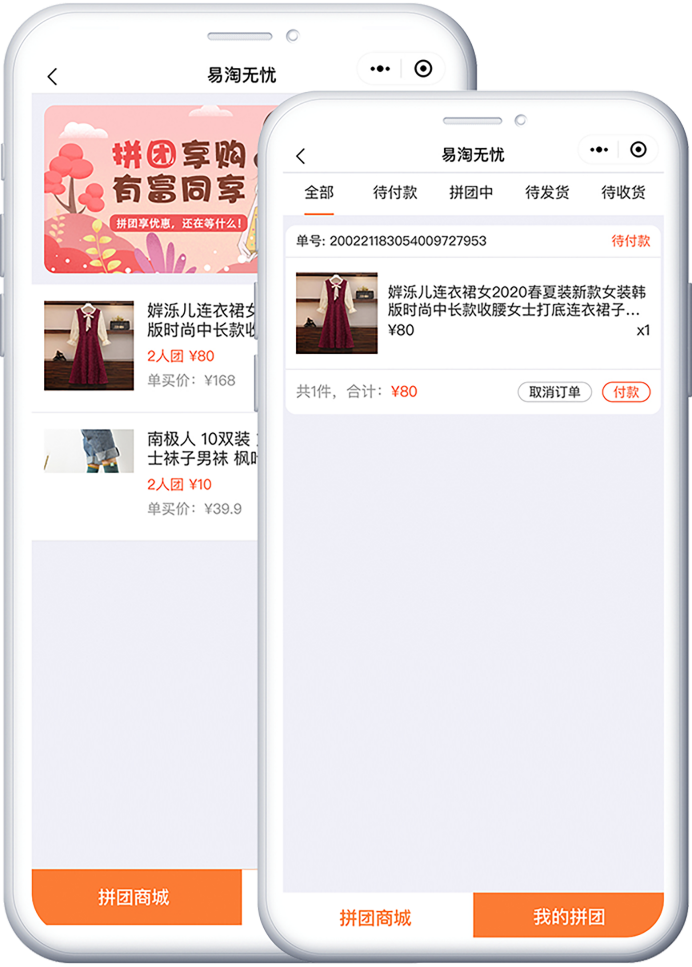 易淘无忧是一款标准化的B2C微信小程序商城,主要帮助线下实体门店和商家实现线上转型升级、线上和线下相互融合。 这款小程序商城可以在微信中直接打开使用,无需下载、即用即走,同时微信自带亿万用户的巨大流量,企业只要做好自己的微信小程序商城,就能沉淀大量用户,裂变带来新用户。 这款小程序商城可以实现客户在线下单购买,商家后台发货,主要包括直播、分销、推广员、团购、砍价、拼团、积分、优惠券、运费券、满减、满赠、买赠、充值、分享等功能。 每个门店或商家都可以部署一套小程序商城, 商家可以根据自己的实际情况设置小程序商城的名称。 可以根据实际情况,与商家的ERP系统,客户管理系统(CRM),仓库管理系统(WMS),物流配送系统(TMS)等进行单独对接。